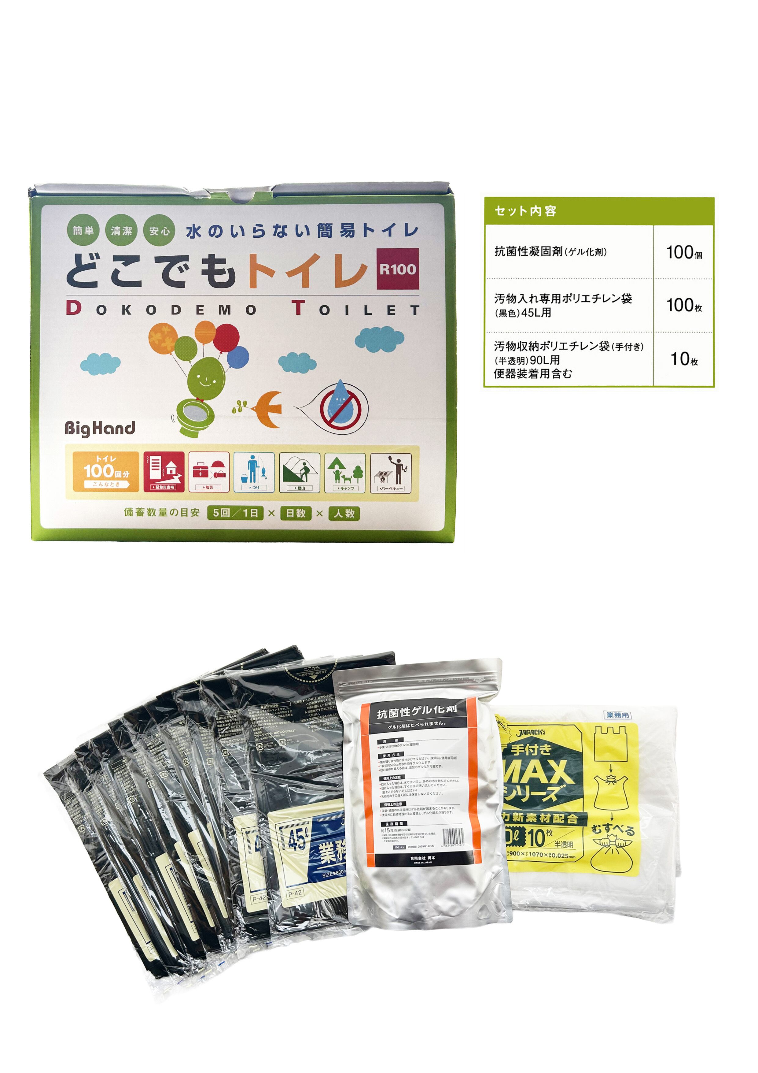 ◎非常時やアウトドアレジャーでも便利な100回分の簡易トイレです。